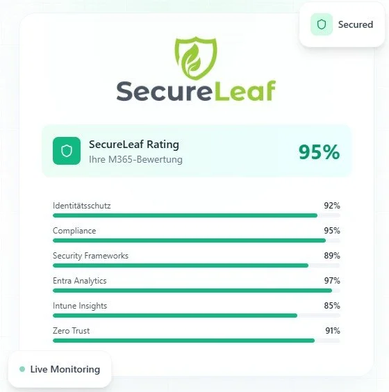 Entdecken Sie, wie SecureLeaf Ihre Microsoft 365 Umgebung mit umfassenden Analysen und Expertenwissen schützen kann und fragen Sie uns jetzt für eine Demo an.